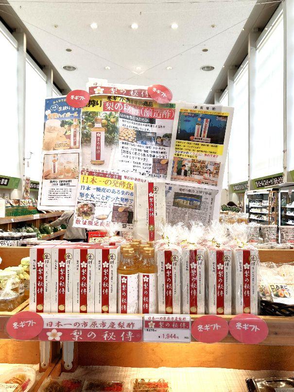 なんと、この日は弊社生絞り【梨の秘傳】(醸造酢)発酵食品が売上NO1でした。